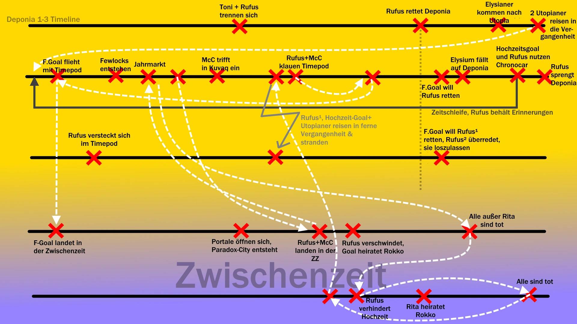 Rufus erwacht aus einem Traum: Er hat geträumt, dass er sich selbst opfert, um seine Heimat Deponia zu retten. Doch er hatte den Sturz überlebt und war nun scheinbar der letzte Überlebende inmitten eines nuklearen Winters. Elysium war abgestürzt und überall waren Fewlocks. Die letzte Möglichkeit schien die Sprengung seiner Heimatwelt. So dringt er in den Sprengturm des Organon ein und zündet die um den Planeten verteilten Bomben. Doch das war alles nur ein Traum, oder?