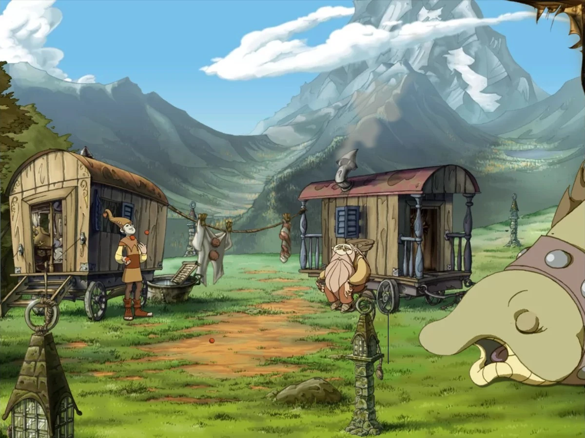 На поляне Осеннего Леса встал на привал цирк, давая Бруно (их ездовому животному) отдохнуть. Конвой циркачей состоит всего из двух вагончиков, один из которых - спальня, а второй - кухня. Для отлавливания назойливых огненных дракончиков циркачи (скорее всего - Бен) установил по периметру лагеря несколько ловушек.