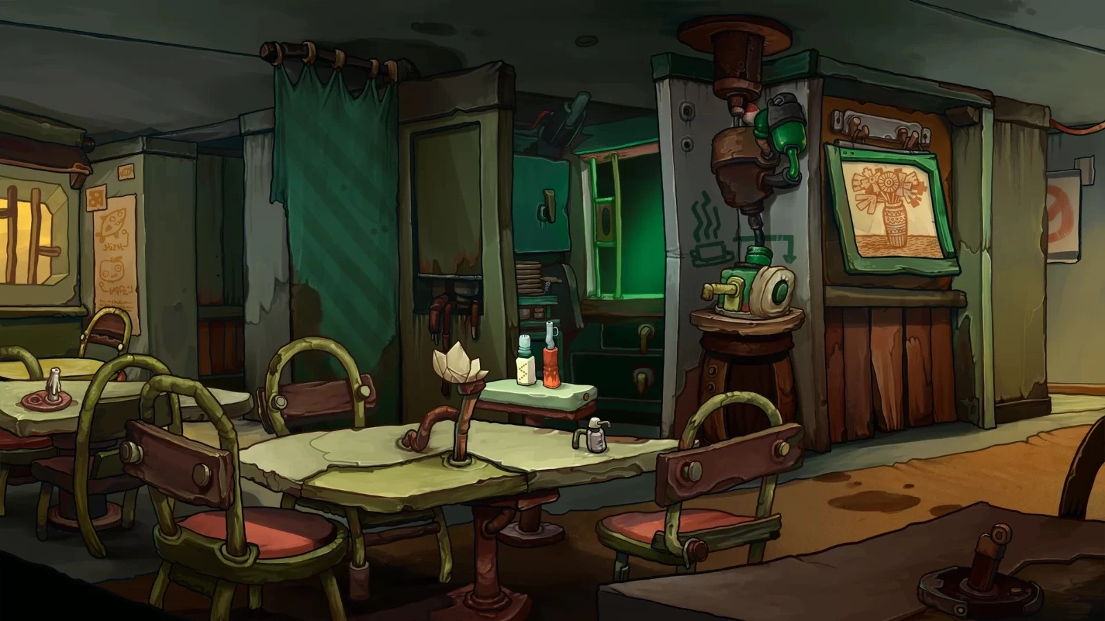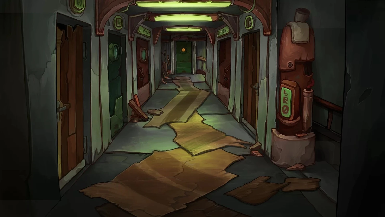 В комнатке за номерами располагается замысловатый обогревательный механизм, сила обогрева номеров зависит от количества горящих красных лампочек на его дисплее. Так же в этой комнате находится автомат по продаже пирогов и проход к балкону.