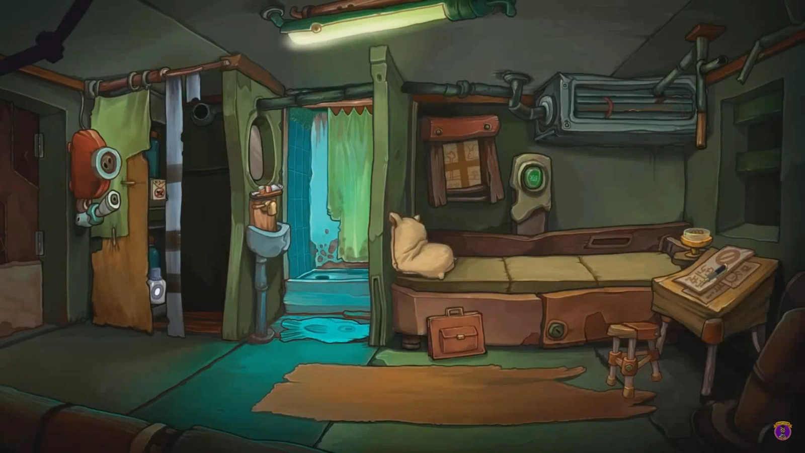 Самый ближний номер по левую сторону от входа. В номере есть душевая кабинка, кладовка, кровать, письменный стол, так же в номере предусмотрены система вентиляции и телефон, что делает этот номер самым лучшим во всем Отеле. В Goodbye Deponia здесь проживал Инспектор Клитус.